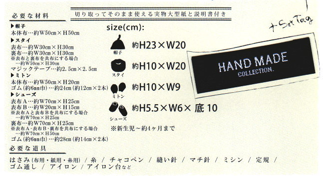 [お届けの目安] クロネコDM便164円切り取ってそのまま使える実物大型紙と説明書付で初心者さんも簡単! * 【ベビー型紙】ベビー4点セット HANDMADE COLLECTION *