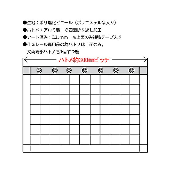 ハイロジック:大型カーテンレール用ビニールカーテン 0.25厚×4.0m×3.0m 防炎 上面ハトメ 00058082