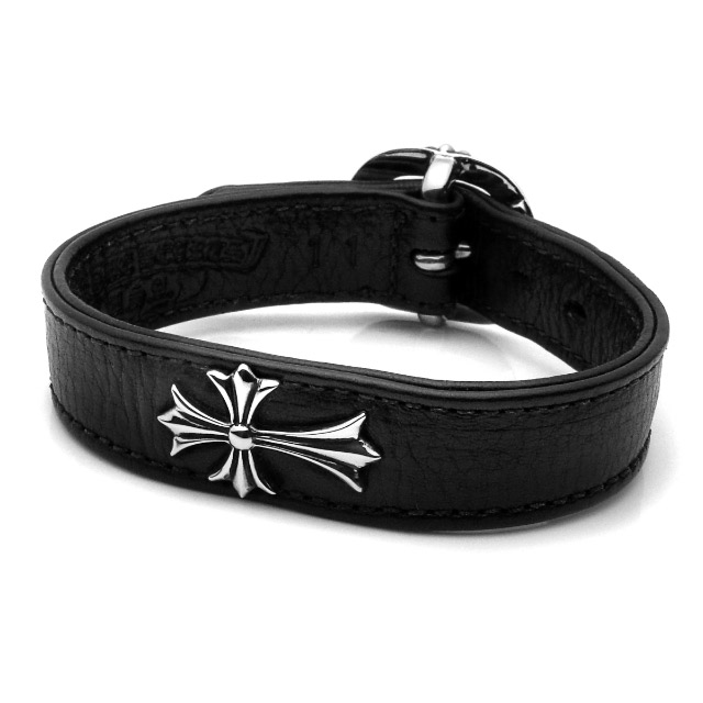 クロムハーツ/Chrome Hearts 【ベント】ラージクロスガンスリンガーレザーブレスレット(シルバー×ブラック/総重量69.6g)【SS07】【小物】【718071】【中古】【P】bb170#rinkan*B