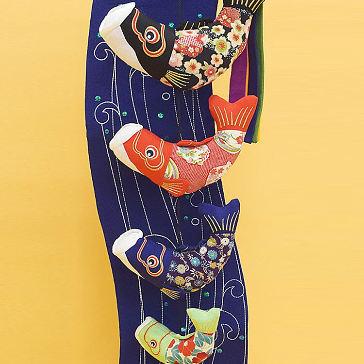 お部屋で飾れるのが嬉しい、こいのぼり。 縮緬工芸品をもっと身近に。子供の成長を願う贈り物として。【京都のつるし飾り ちりめん 鯉の滝のぼり(大)】つるし掛け 五月人形 兜 兜飾り 鯉のぼり こいのぼり 室内用 五月人形