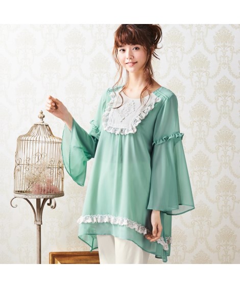 トップス・チュニック 9分袖レースチュニックブラウス(薄手素材) 4L〜6L ニッセン nissen