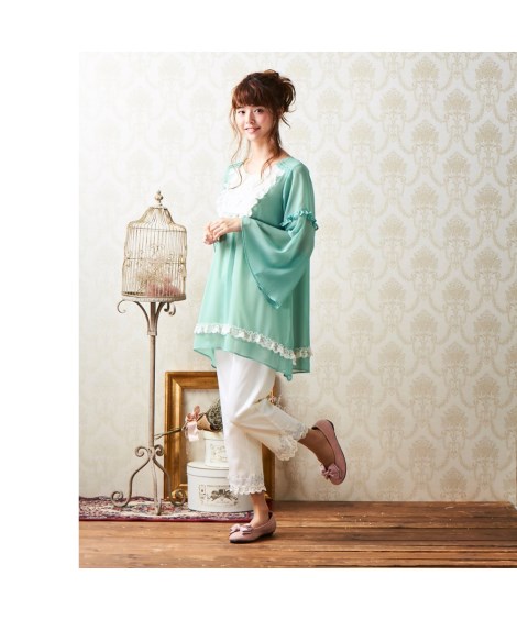 裾に効かせた差し色が可愛い、ふんわりシフォン素材のチュニックブラウス。https://t.co/kNwJDiVv4I